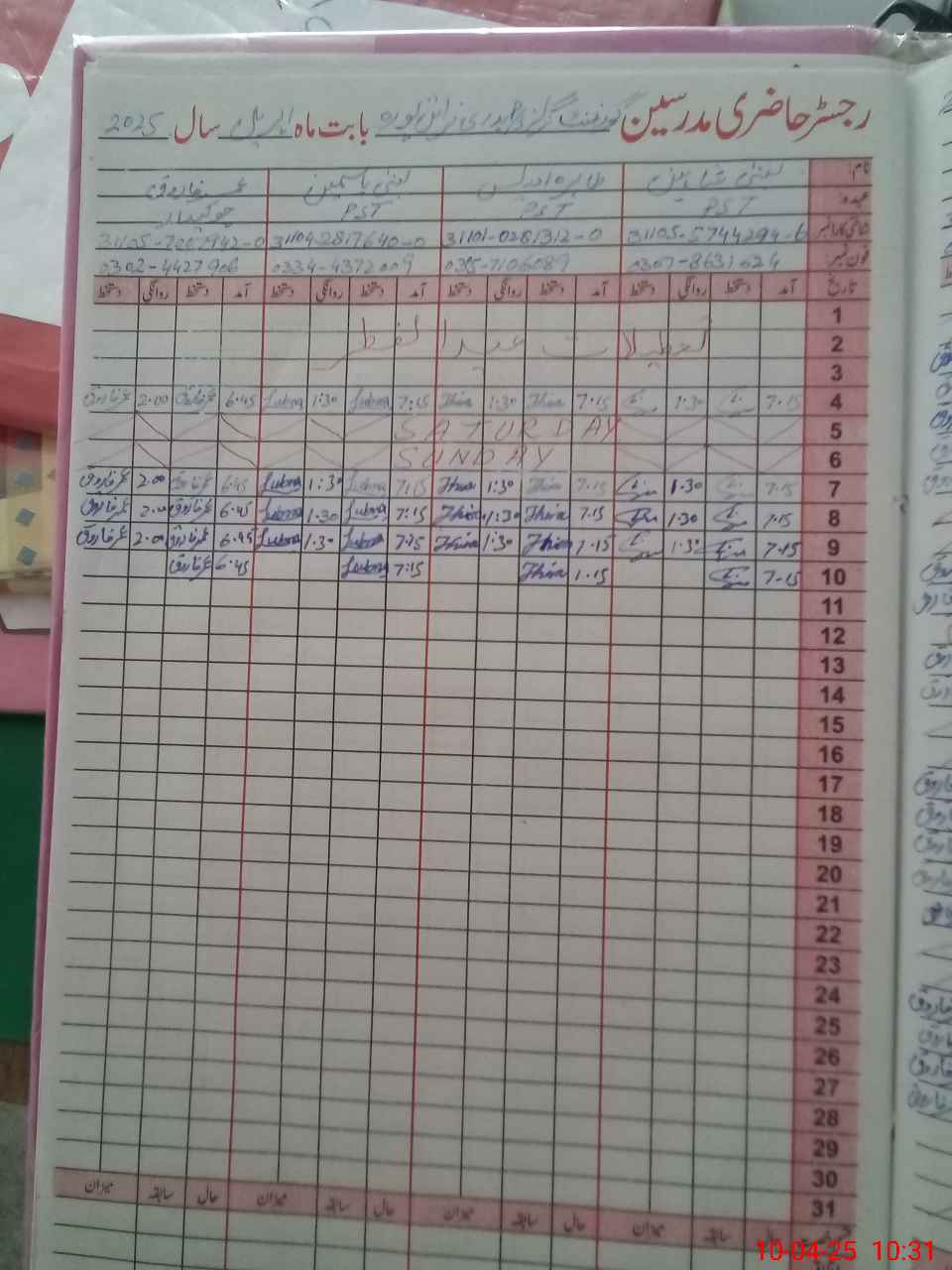 | Name: TA**** ID**** Designation: (School Headmaster's/Headmistress's) PST Phone/Cell Number: 03**** |