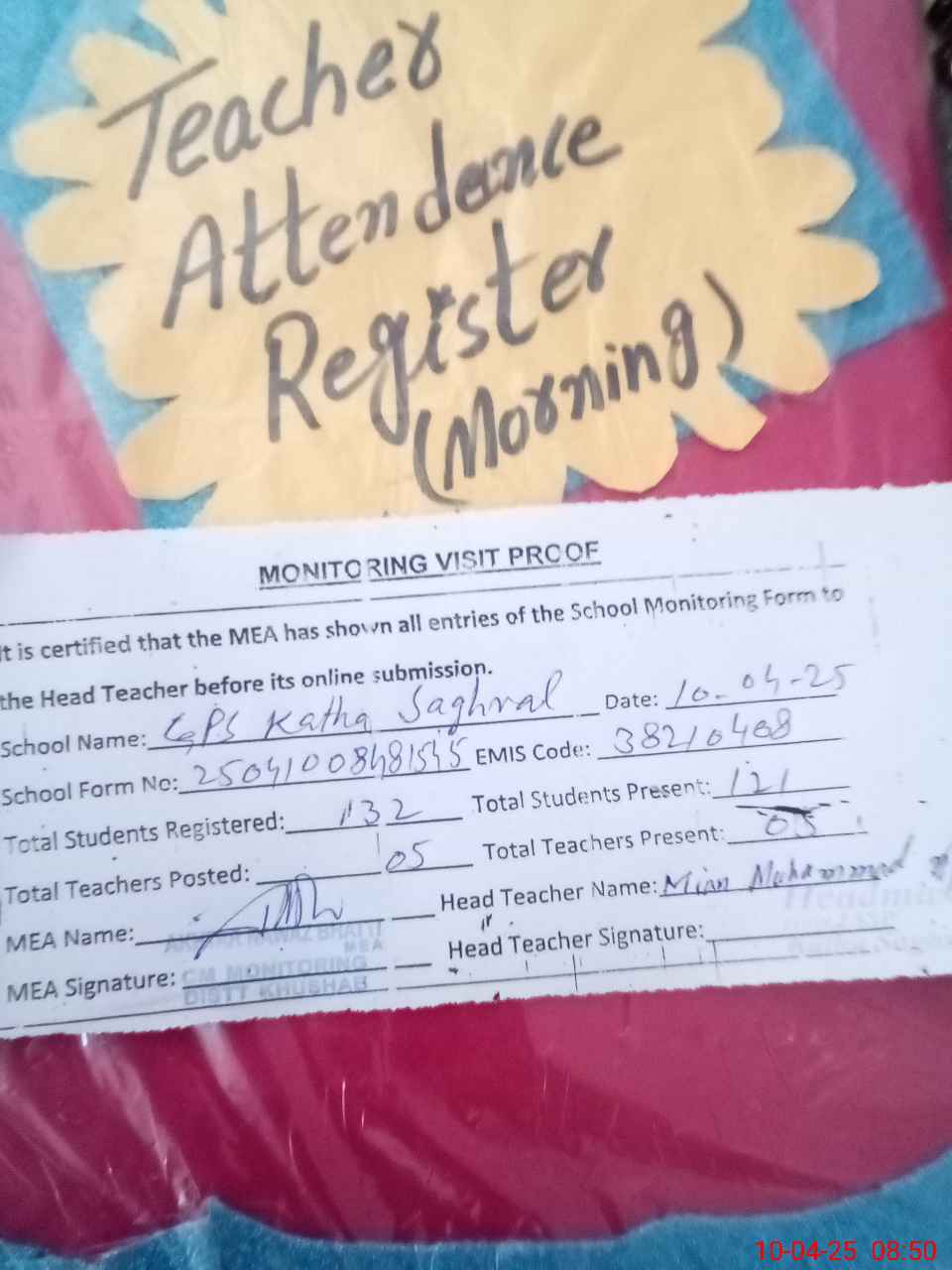 | EMIS Code: 38210408 | Name of School: GPS KATHA SAGHRAL | |||