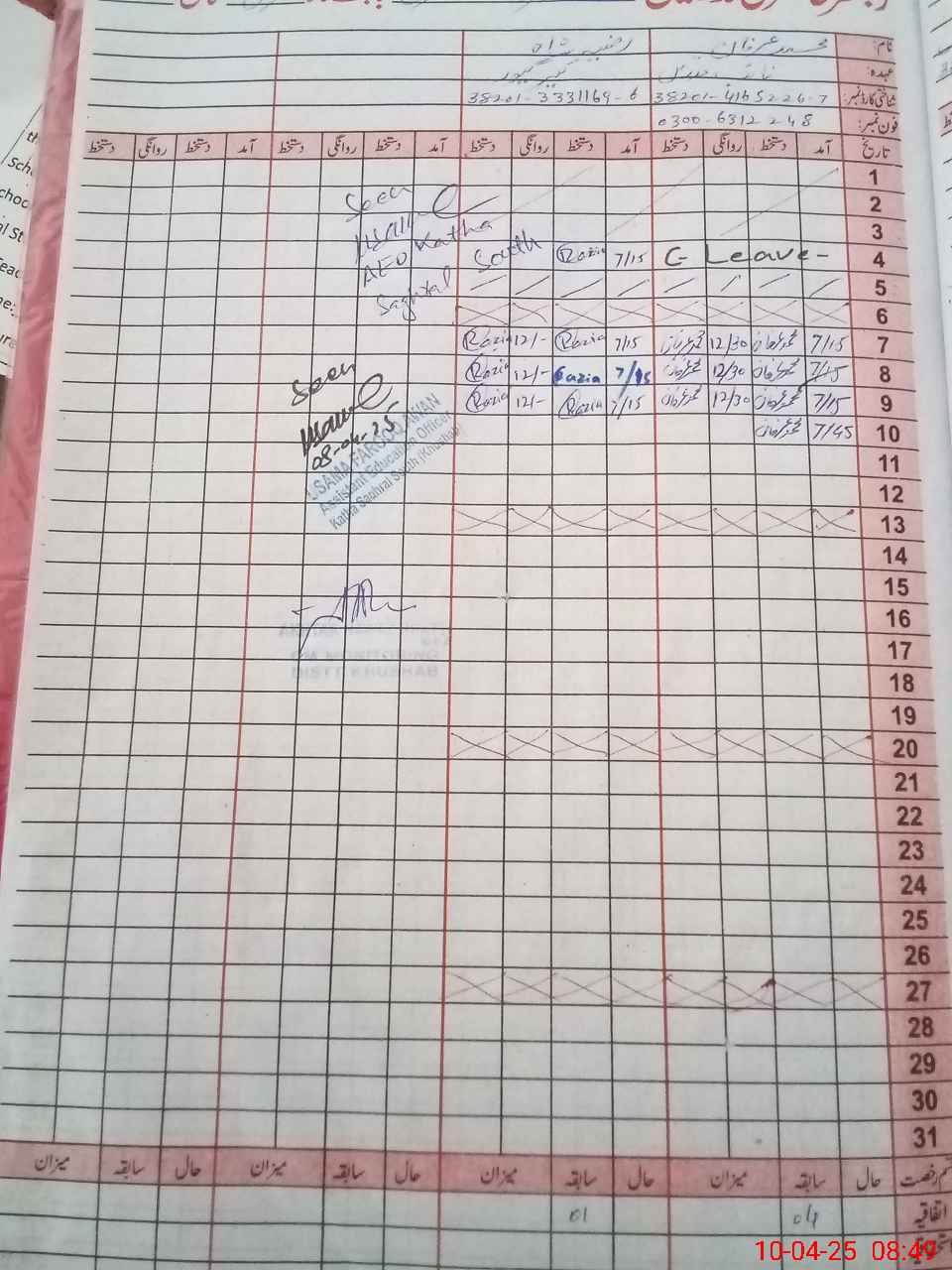 | Name: MI**** MU**** Designation: (School Headmaster's/Headmistress's) PST Phone/Cell Number: 03**** |
