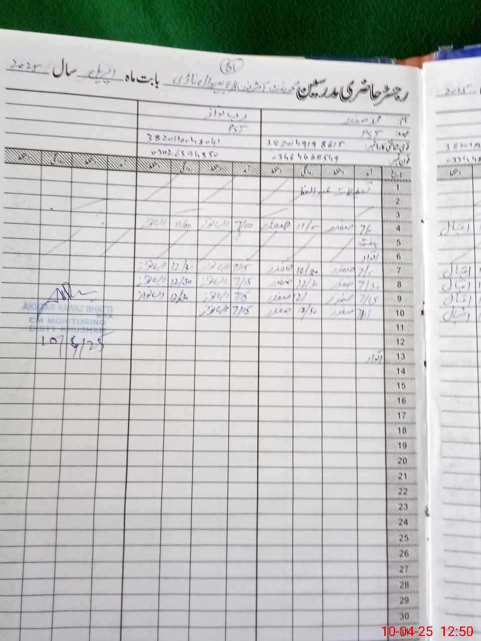 | Name: MU**** Iq**** Designation: (School Headmaster's/Headmistress's) PST Phone/Cell Number: 03**** |