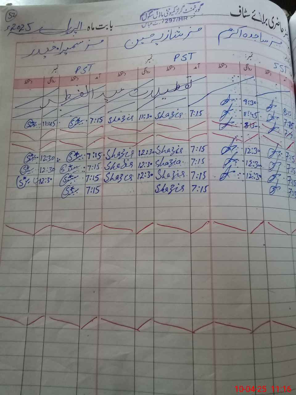 | CNIC | Full Name | Designation | R/C | Absence During Last Calender Month |