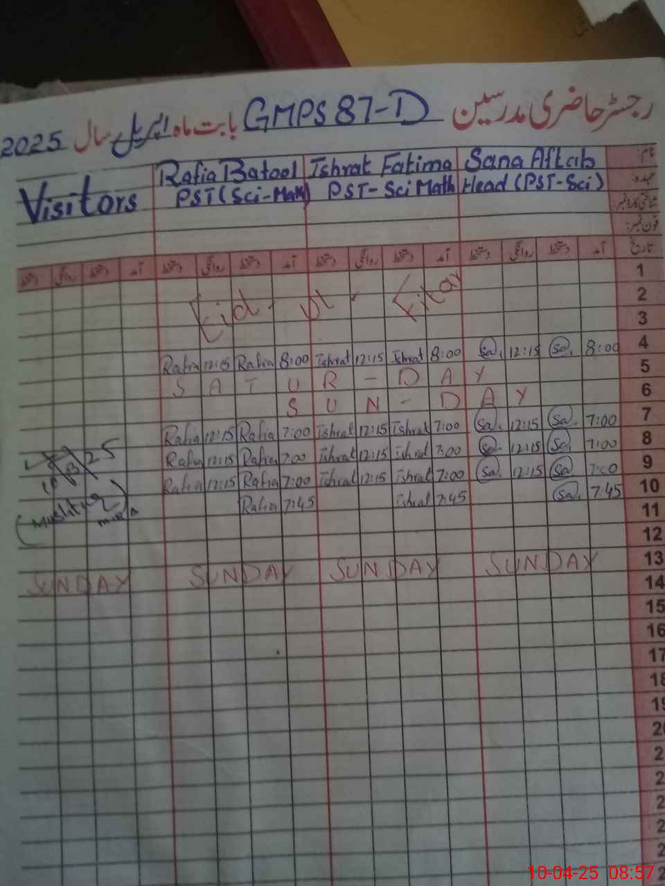 | Name: SA**** AF**** Designation: (School Headmaster's/Headmistress's) PST Phone/Cell Number: 03**** |