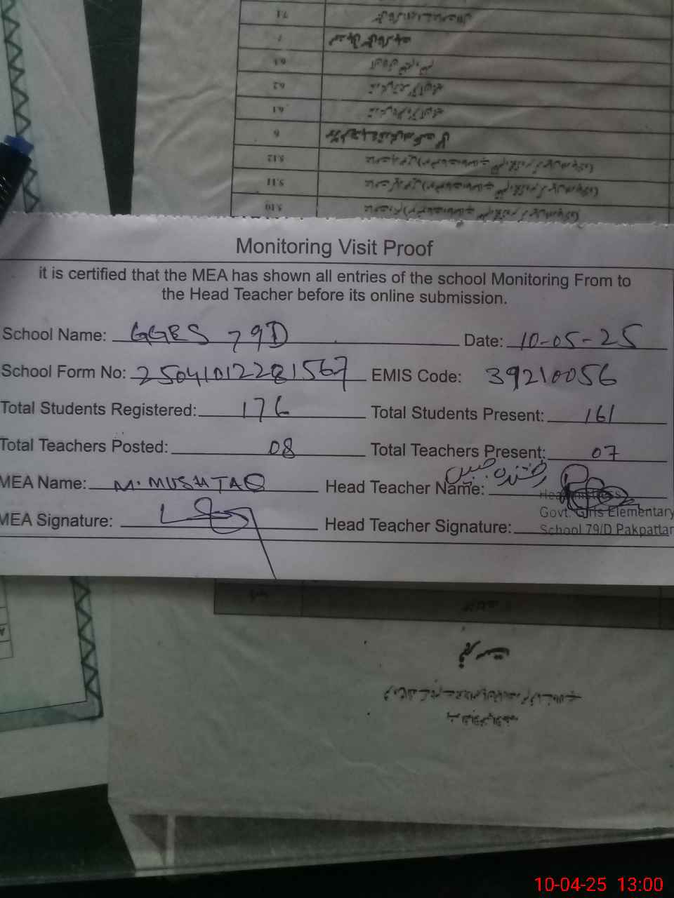| EMIS Code: 39210056 | Name of School: GGES 79/D PAKPATTAN | |||