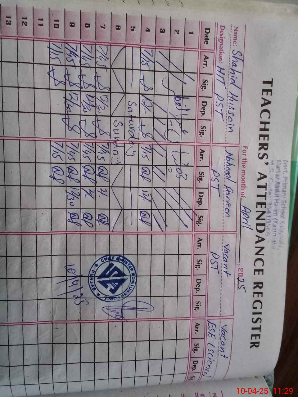| Name: Sh**** Hu**** Designation: (School Headmaster's/Headmistress's) Pst Phone/Cell Number: 03**** |