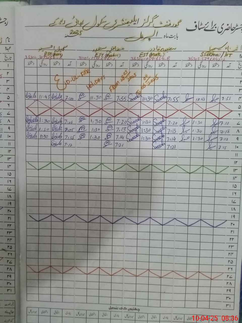 | CNIC | Full Name | Designation | R/C | Absence During Last Calender Month |
