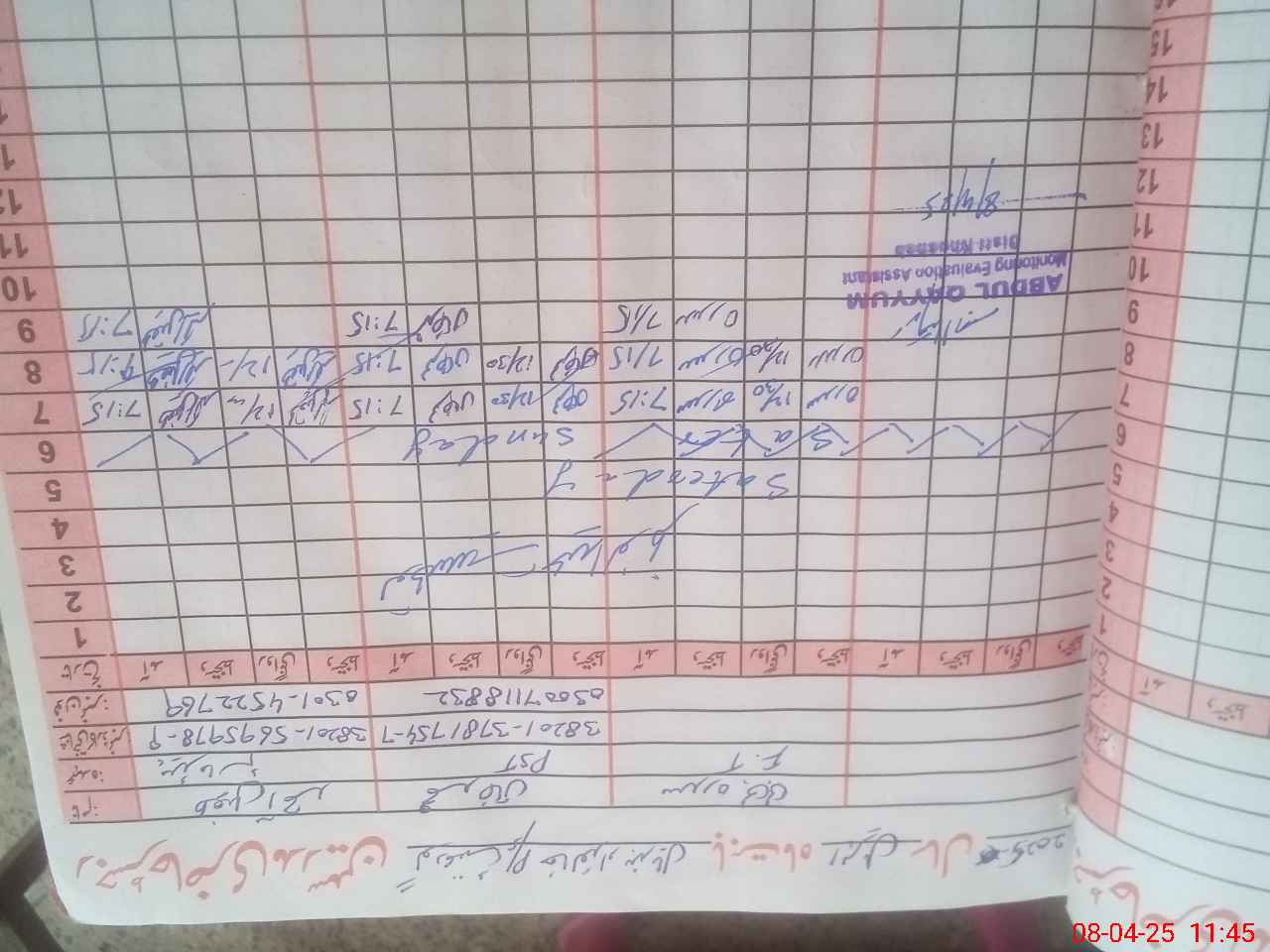 | Monitoring Date: 08-04-2025 | Start Time: 08-04-2025 10:52 AM | End Time: 08-04-2025 11:47 AM | Name of MEA: HA**** AB**** QA**** | |