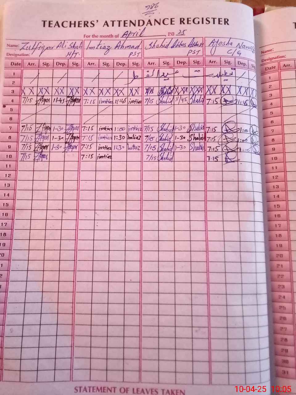 | Leave | Duty | Absent | Maternity | Medical | Ex- Pak |