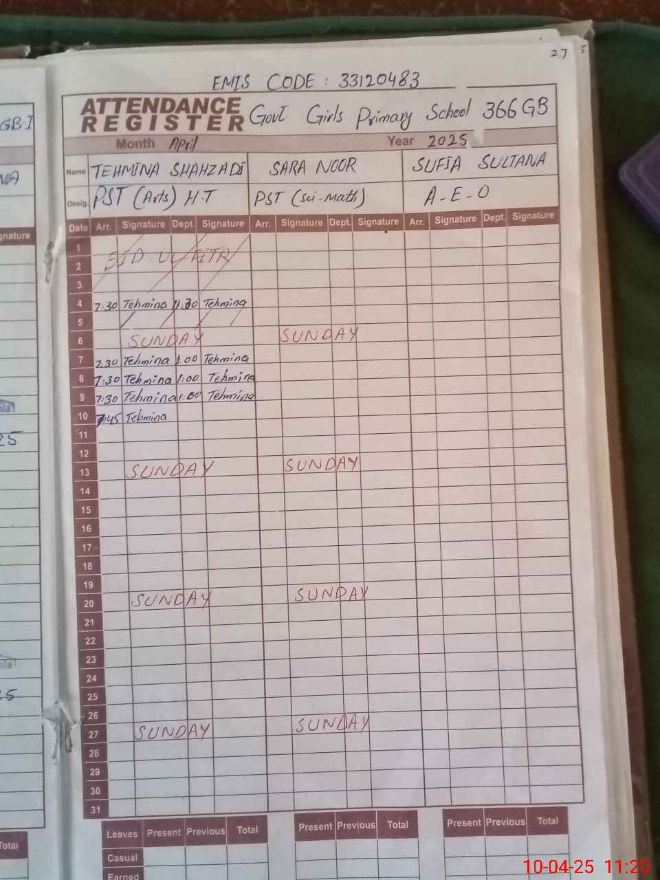 | 33**** | Sa**** No**** | 1 | 1 | 0 | 0 | 0 | 0 | 0 | 0 | 0 | 0 | 0 | Absent (Un-Authorized) |