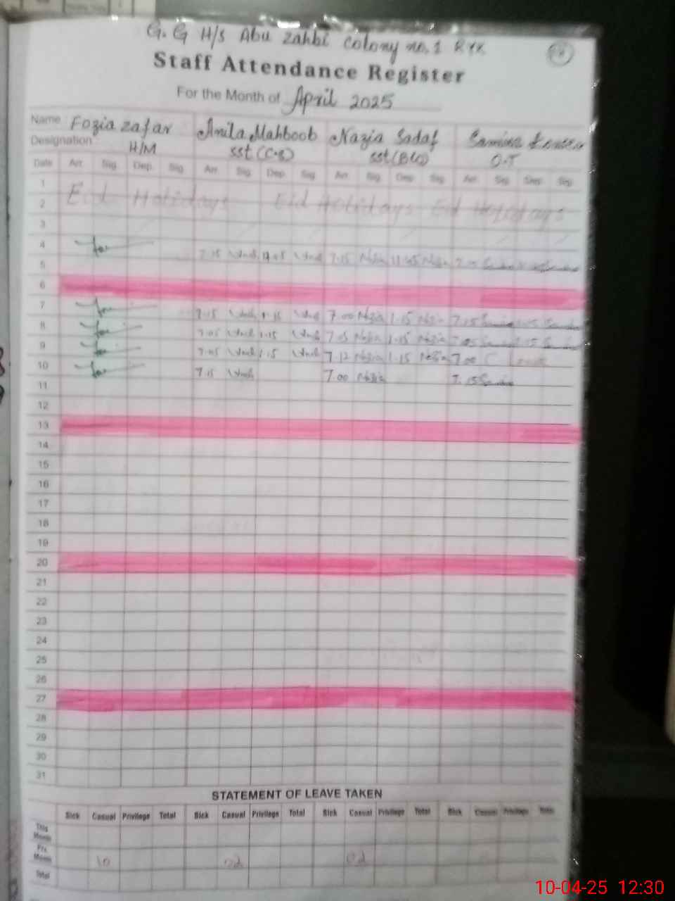 | 31**** | Sa**** Ma**** | Regular | 0 | 31 | 0 | 0 | 0 | 0 | 0 | 0 | 0 | Exam Duty | |