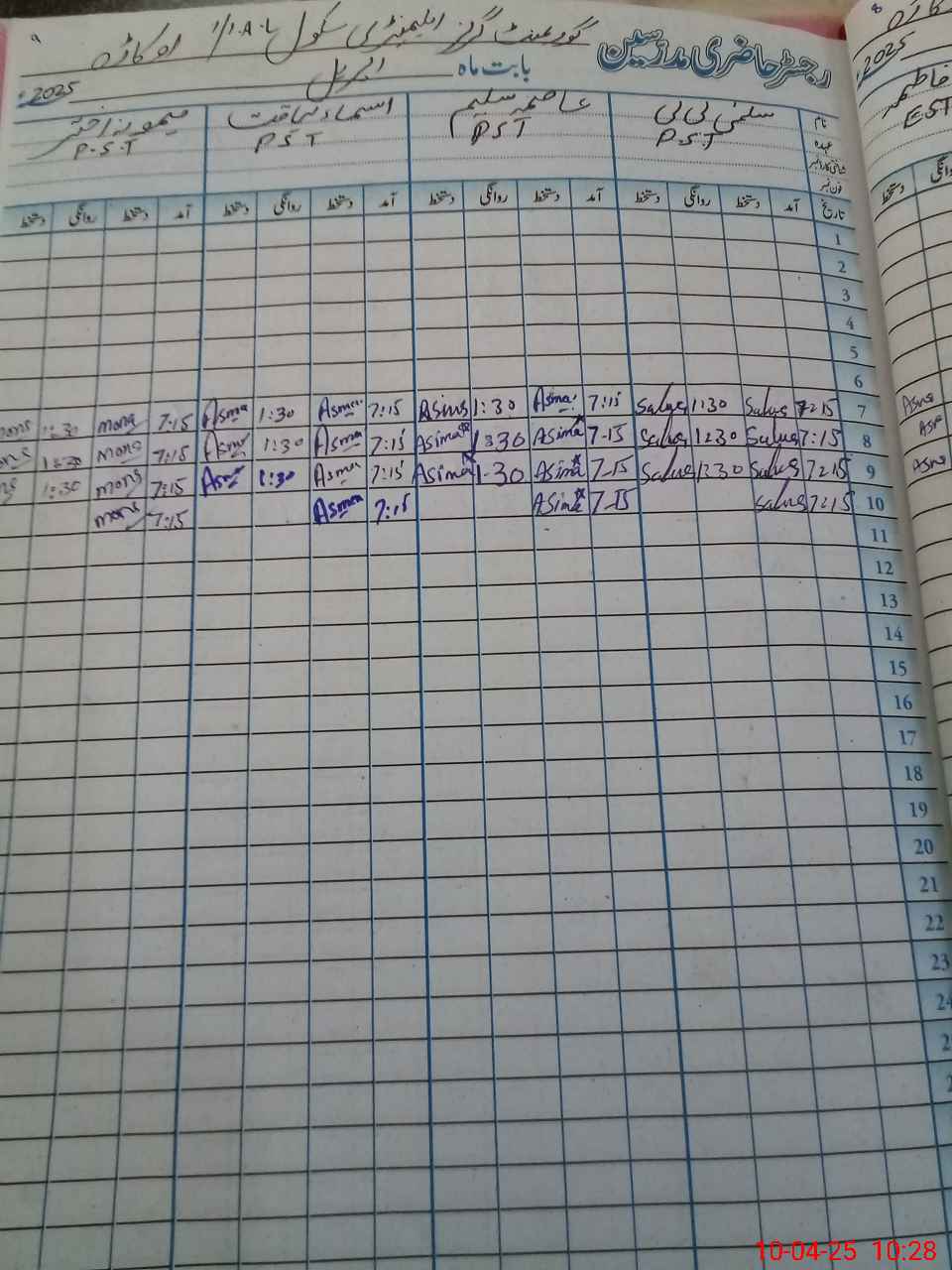 | 35**** | Ta**** Ya**** | 3 | 1 | 0 | 0 | 0 | 0 | 0 | 0 | 0 | 0 | 0 | Exam Duty |