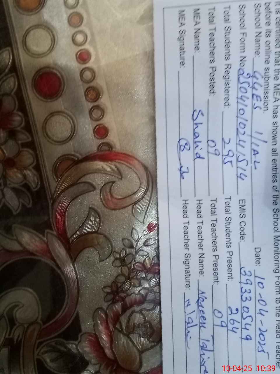 | Certified that this School was Inspected by the Undersigned MEA/DMO Today and the Information Stated Above is as Per Record. | |||||
