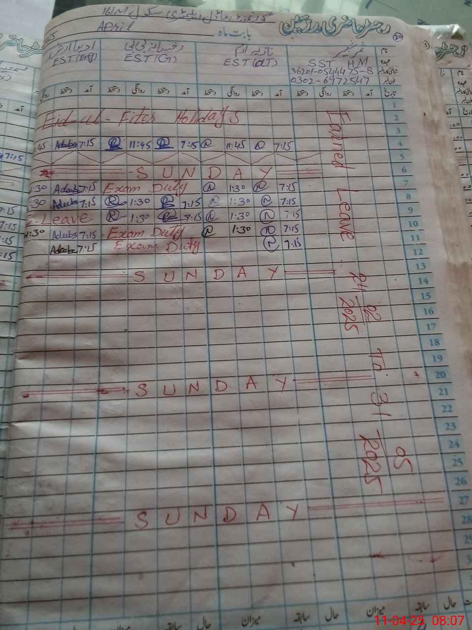 | Leave | Duty | Absent | Maternity | Medical | Ex- Pak |