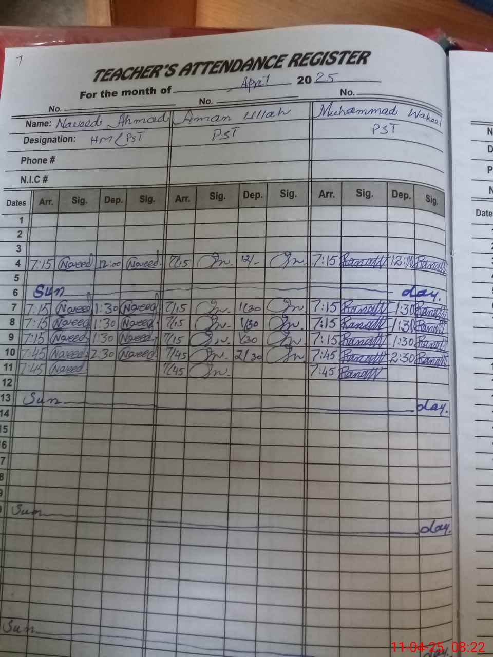 | Name: Na**** Ah**** Designation: (School Headmaster's/Headmistress's) PST Phone/Cell Number: 03**** |