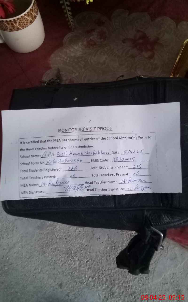 | EMIS Code: 38220015 | Name of School: GPS BASTI AHMED SHER RAHDARI | |||