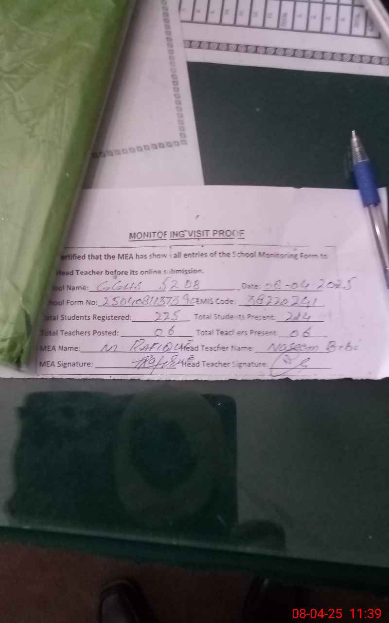 | Certified that this School was Inspected by the Undersigned MEA/DMO Today and the Information Stated Above is as Per Record. | |||||