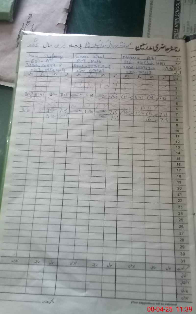 | Name: NA**** BI**** Designation: (School Headmaster's/Headmistress's) SSE BIO Phone/Cell Number: 03**** |