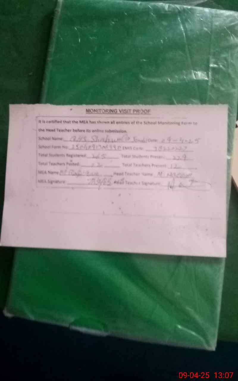 | EMIS Code: 38220227 | Name of School: GHS SHAH WALA JANUBI | |||