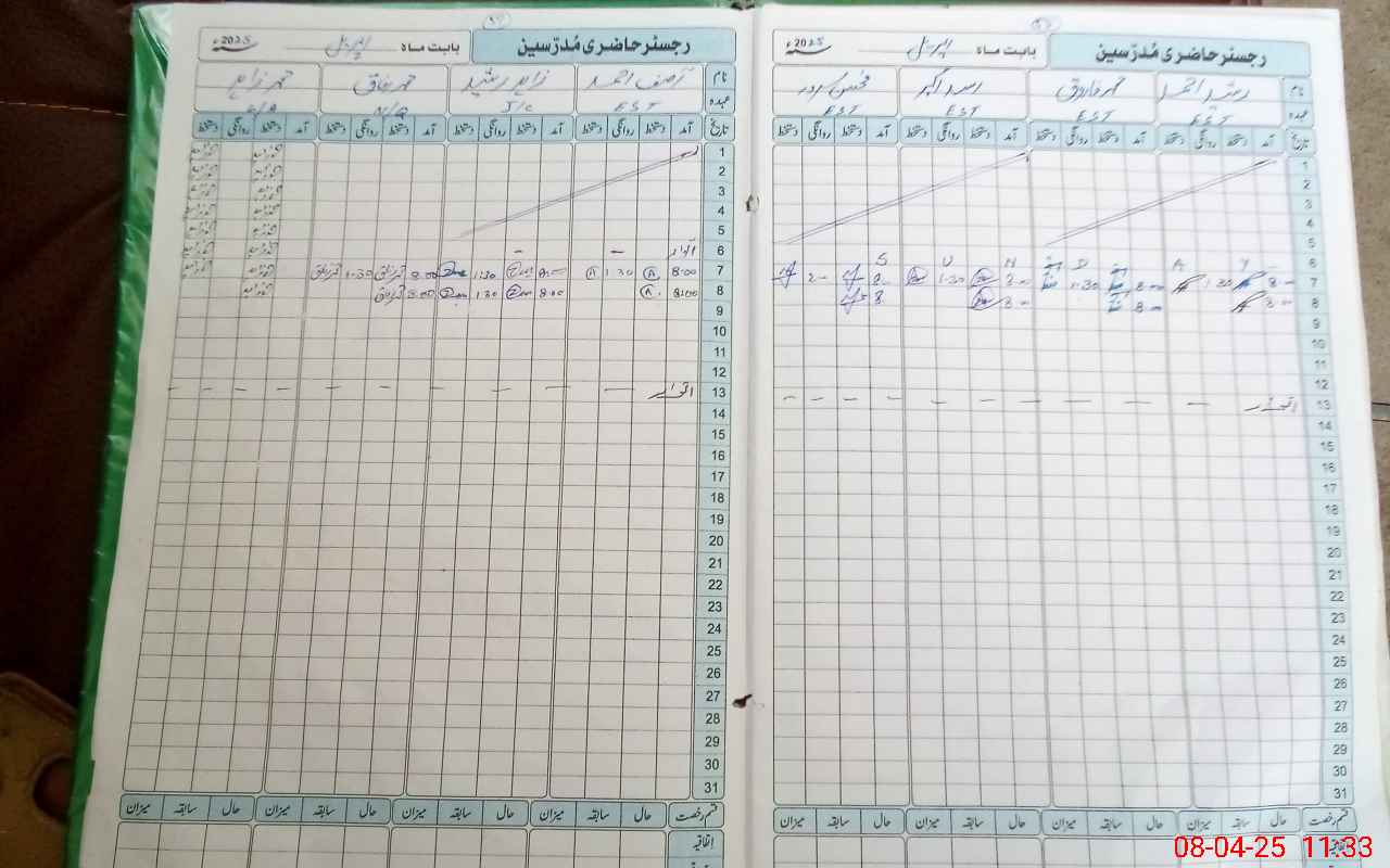 | CNIC | Full Name | Designation | R/C | Absence During Last Calender Month |