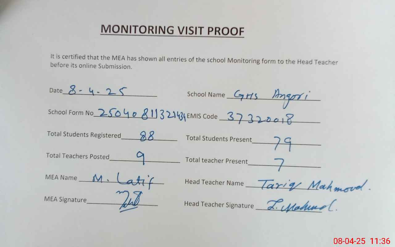 | EMIS Code: 37320018 | Name of School: GHS ANGOORI | |||