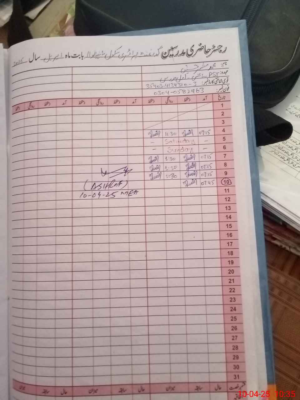 | Name: ZU**** AL**** Designation: (School Headmaster's/Headmistress's) PST Phone/Cell Number: 03**** |