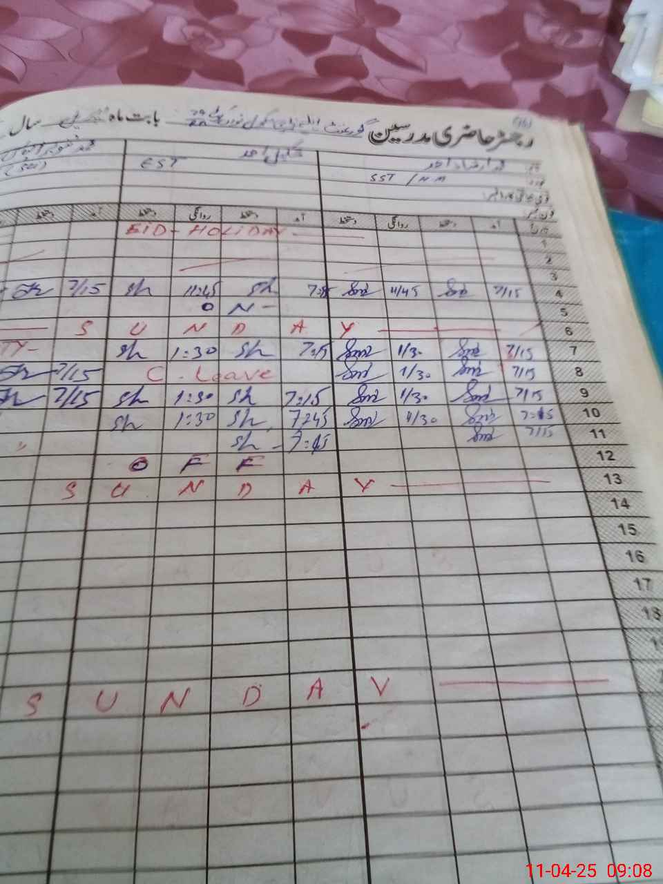 | 35**** | As**** Na**** | PST | Regular | 0 | 0 | 0 | 0 | 0 | 0 | 0 | 0 | 0 | Exam Duty |