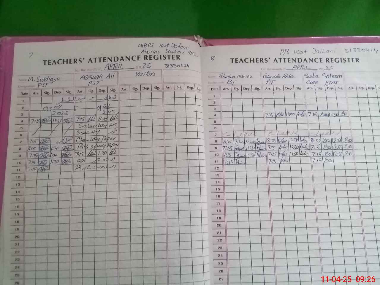 | Name: Mu**** Sa**** Designation: (School Headmaster's/Headmistress's) PST Phone/Cell Number: 03**** |
