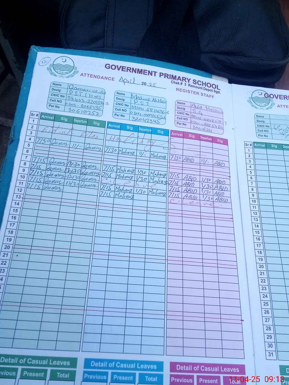 | Name: QA**** UDDI**** Designation: (School Headmaster's/Headmistress's) PST Phone/Cell Number: 03**** |