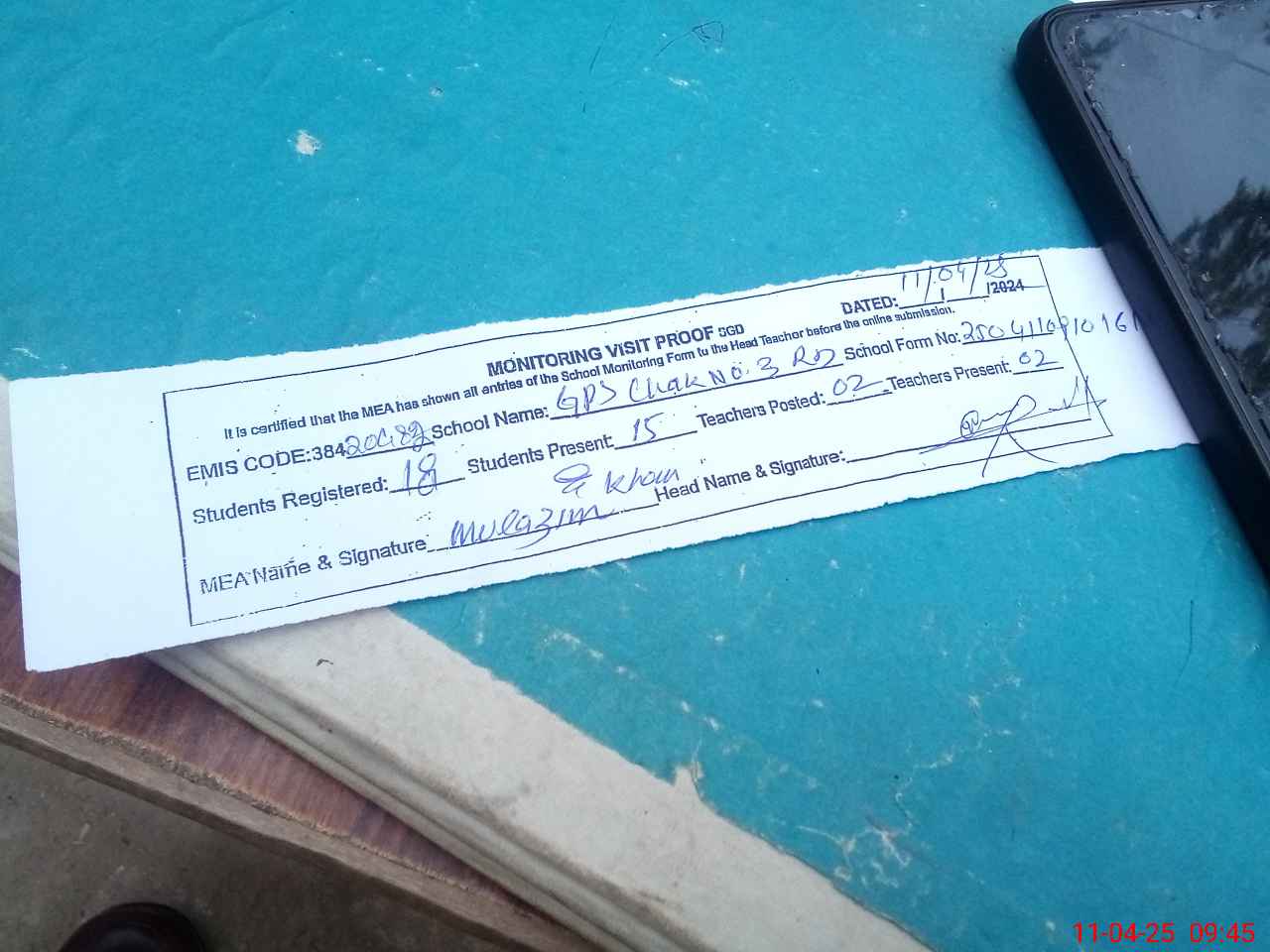 | EMIS Code: 38420482 | Name of School: GPS CHAK NO.3 REMOUNT DEPOT | |||