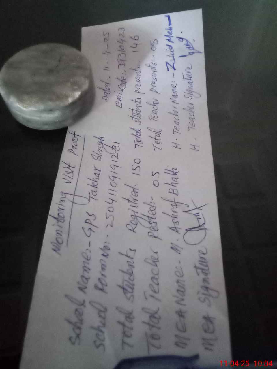 | Attendance Register | Head Teacher | MEA with School | Visit Proof |