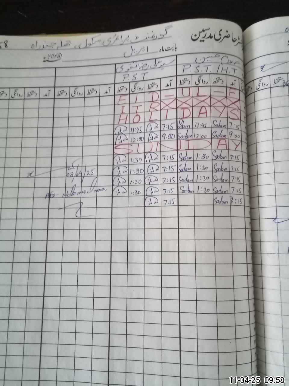 | Name: Sa**** Hu**** Designation: (School Headmaster's/Headmistress's) PST Phone/Cell Number: 03**** |