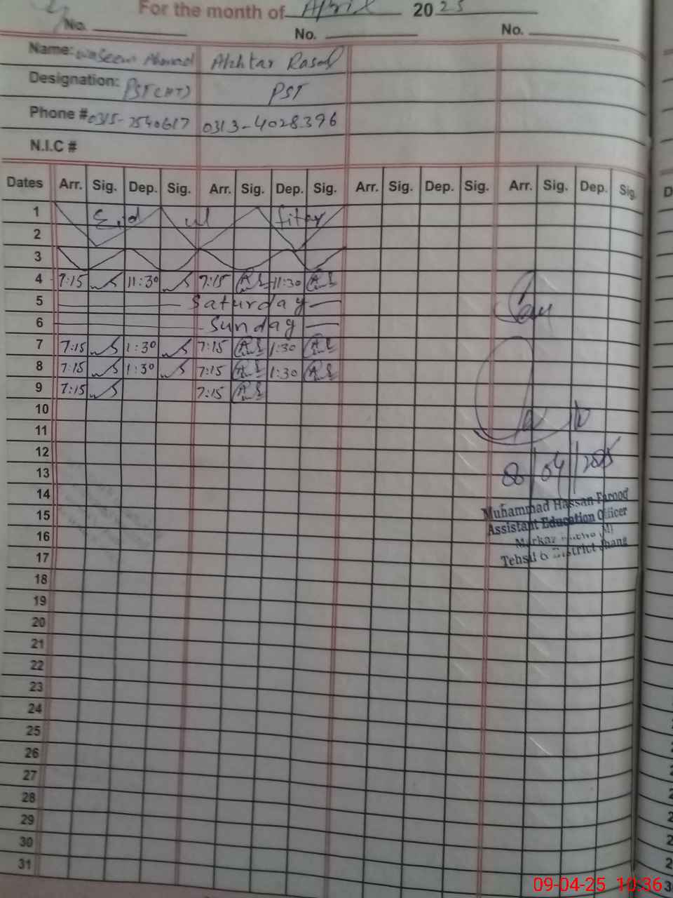 | Name: Wa**** Ah**** Designation: (School Headmaster's/Headmistress's) Esearts Phone/Cell Number: 03**** |