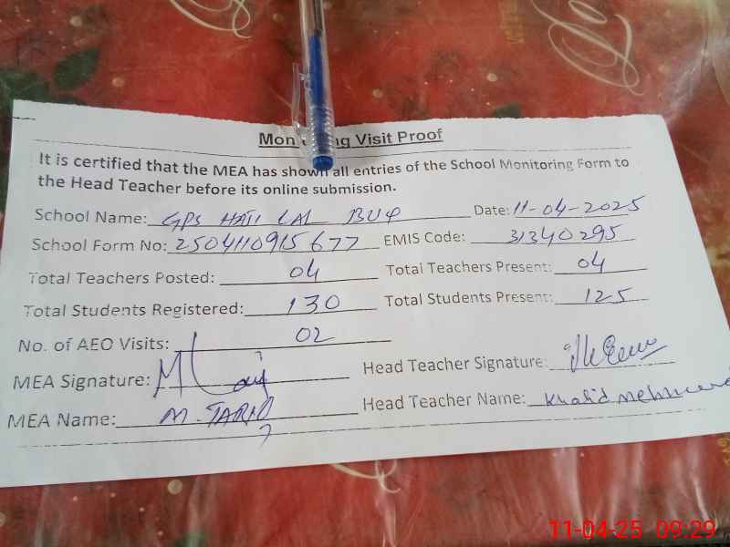 | EMIS Code: 31340295 | Name of School: GPS HAJI LAL BUX | |||