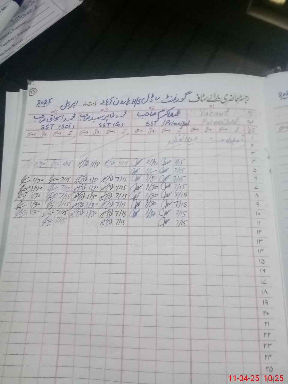 | 31**** | As**** Al**** De**** | SST | Regular | 0 | 0 | 0 | 0 | 0 | 0 | 0 | 0 | 0 | Exam Duty |