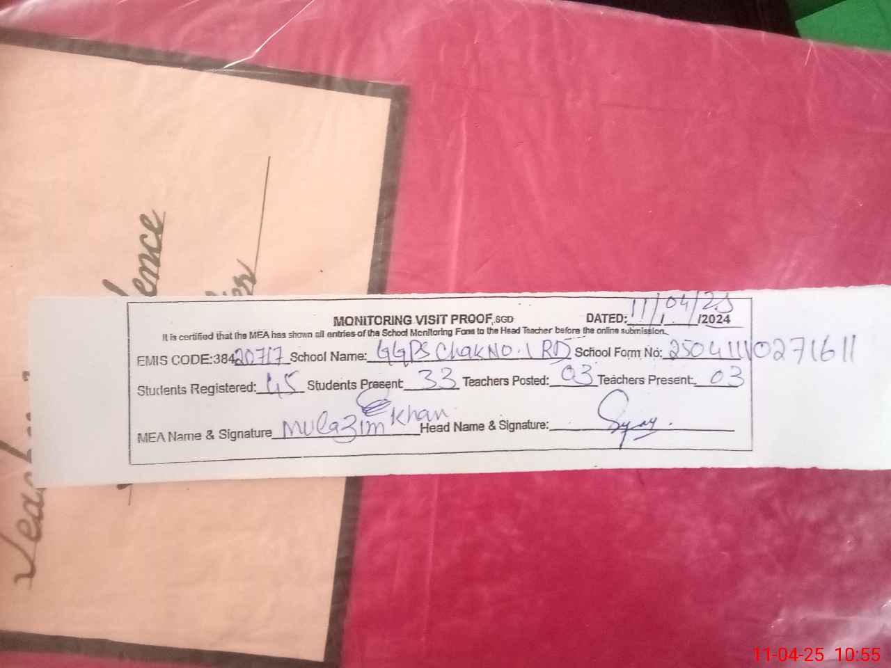 | EMIS Code: 38420717 | Name of School: GGPS CHAK NO.1 REMOUNT DEPOT | |||