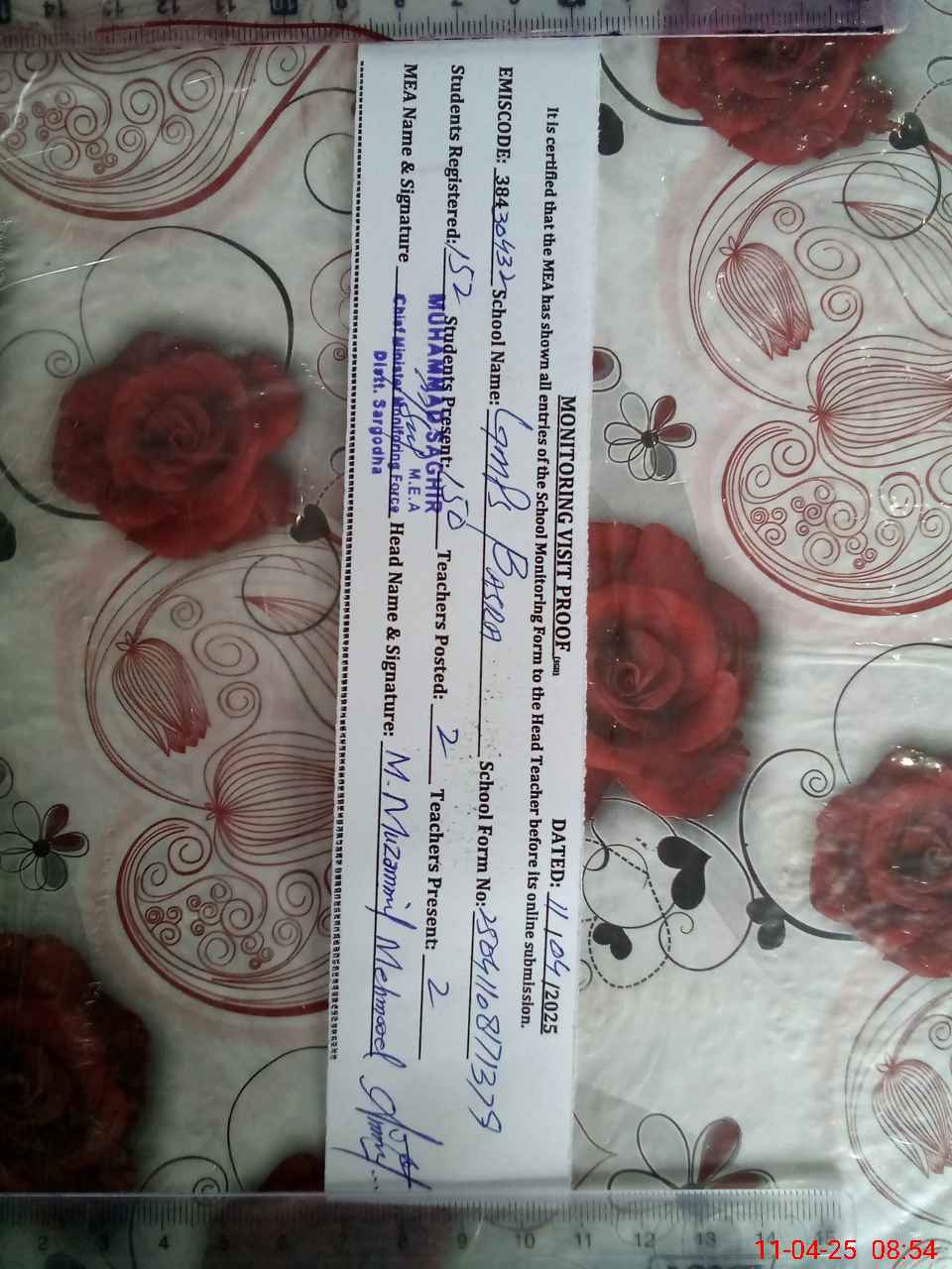 | Certified that this School was Inspected by the Undersigned MEA/DMO Today and the Information Stated Above is as Per Record. | |||||