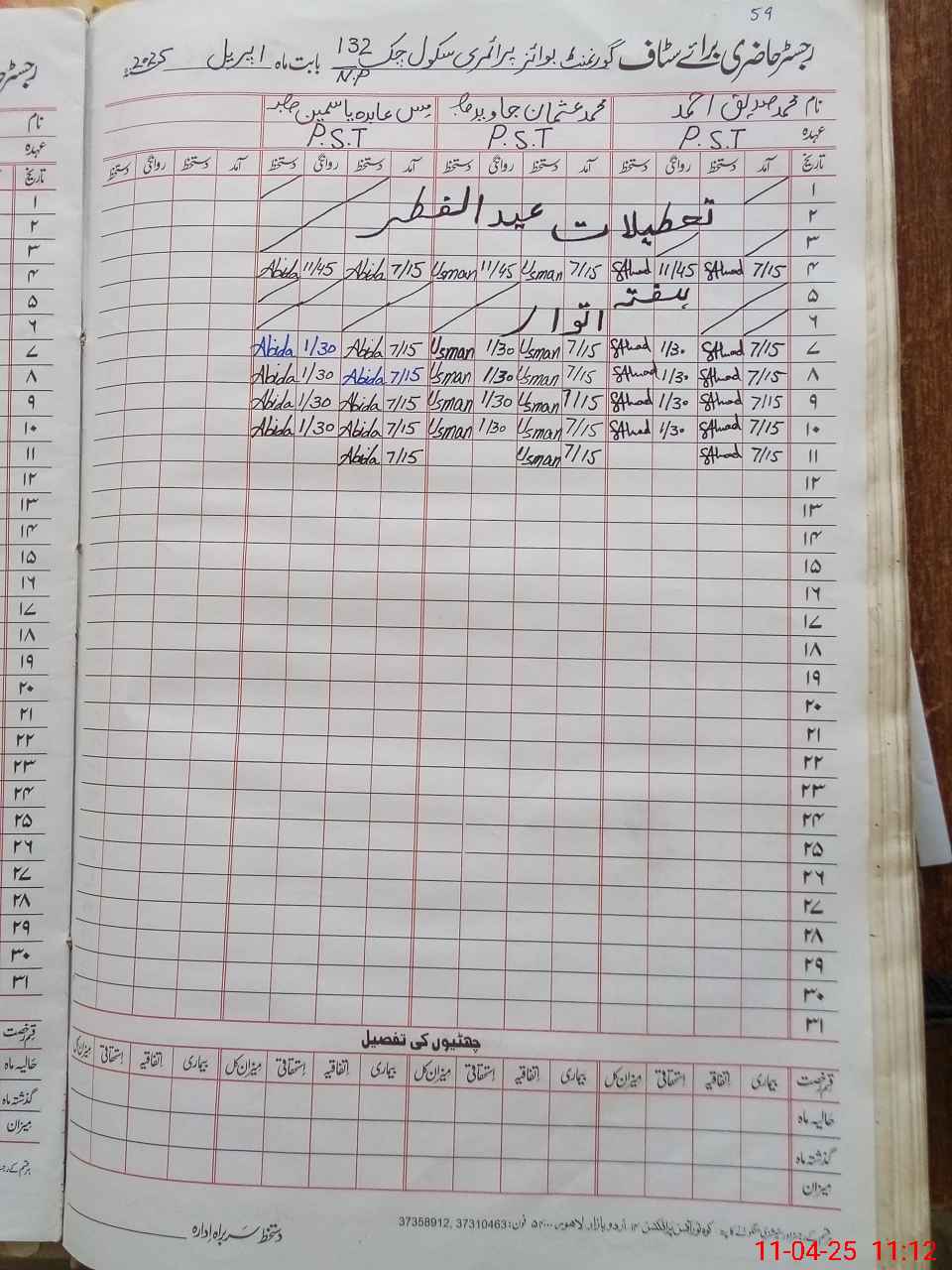 | CNIC | Full Name | Designation | R/C | Absence During Last Calender Month |