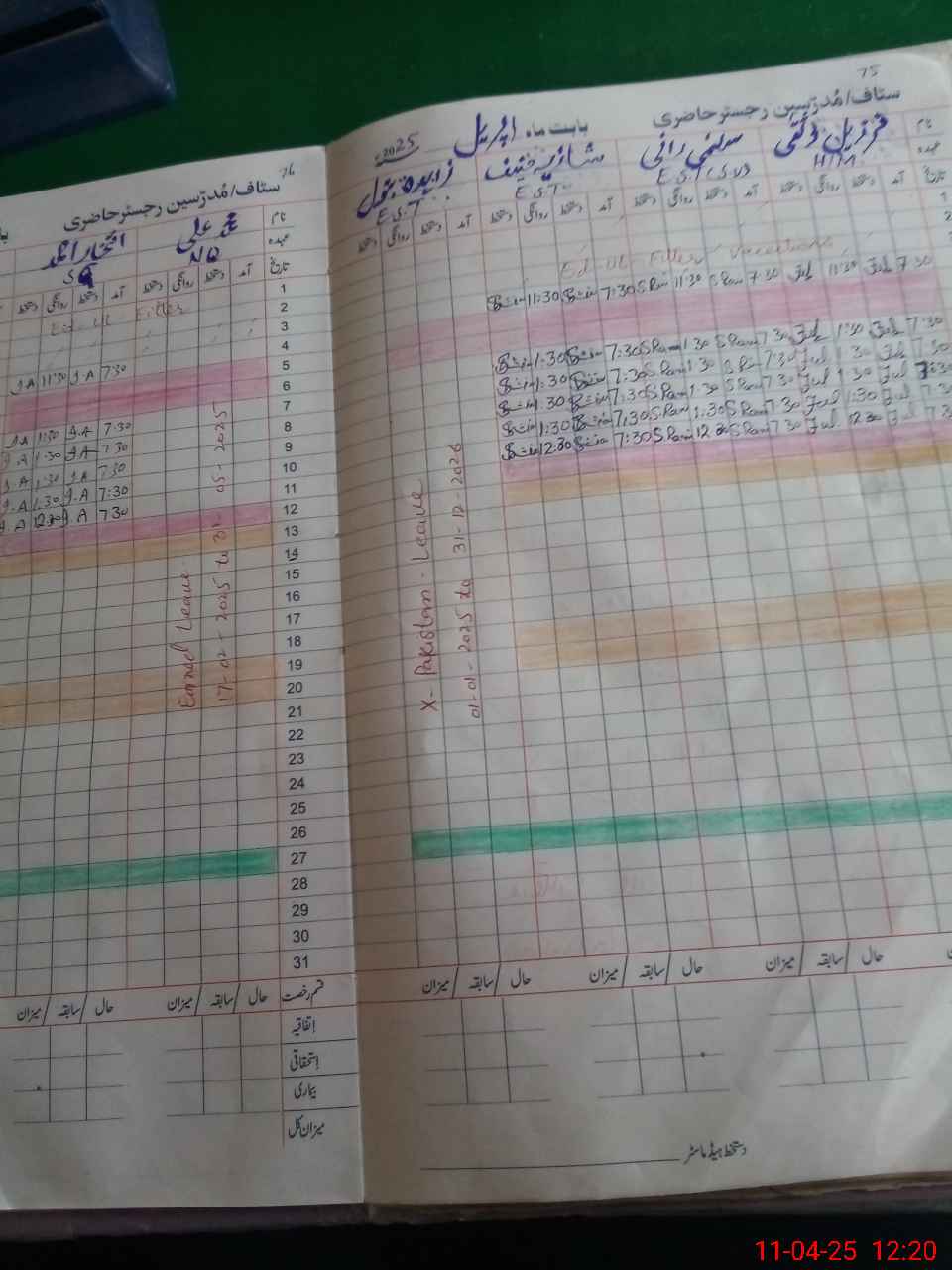| Leave | Duty | Absent | Maternity | Medical | Ex- Pak |