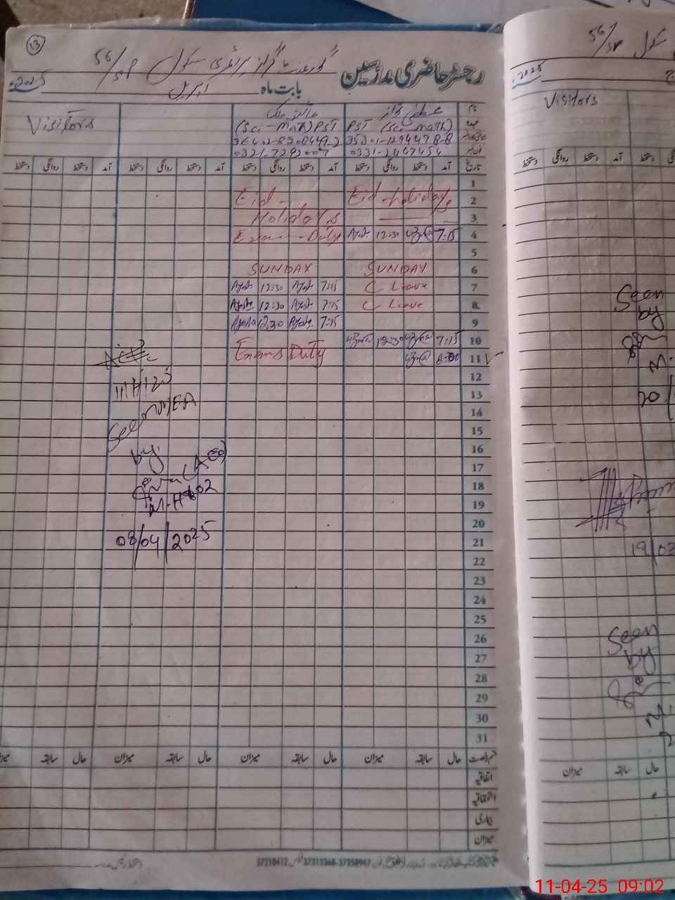 | Name: Uz**** Na**** Designation: (School Headmaster's/Headmistress's) PST Phone/Cell Number: 03**** |
