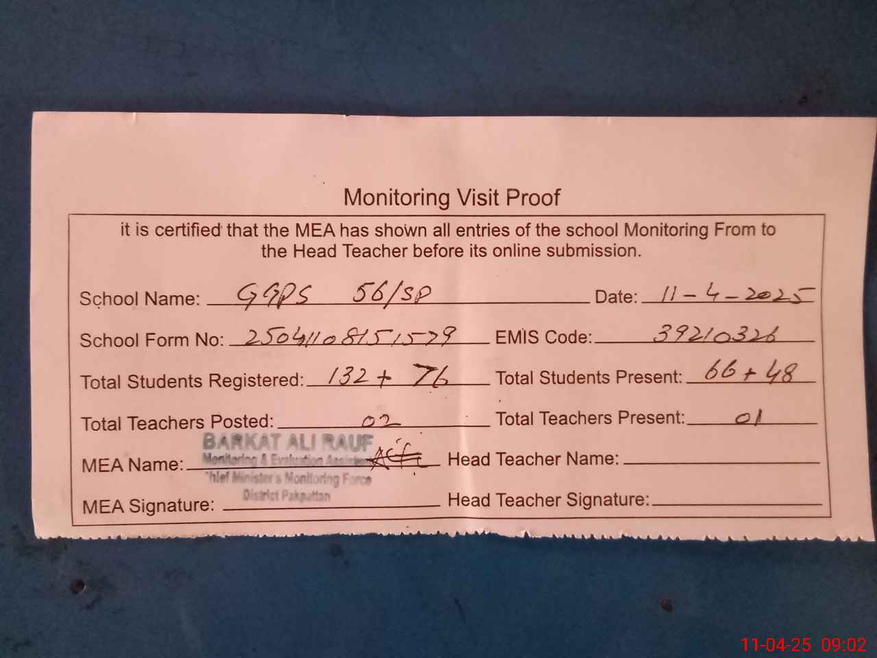 | EMIS Code: 39210326 | Name of School: GGPS 56 SP | |||