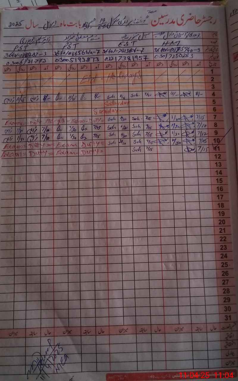 | 36**** | Za**** Sa**** | PST | Regular | 0 | 0 | 0 | 0 | 0 | 0 | 0 | 0 | 0 | Exam Duty |