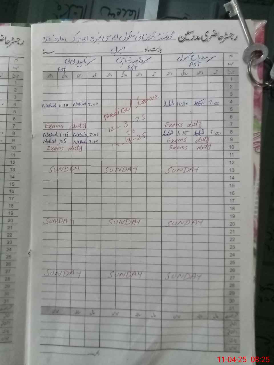 | 36**** | Na**** Ak**** | PST | Regular | 2 | 11 | 0 | 0 | 0 | 0 | 0 | 0 | 2 | Exam Duty |