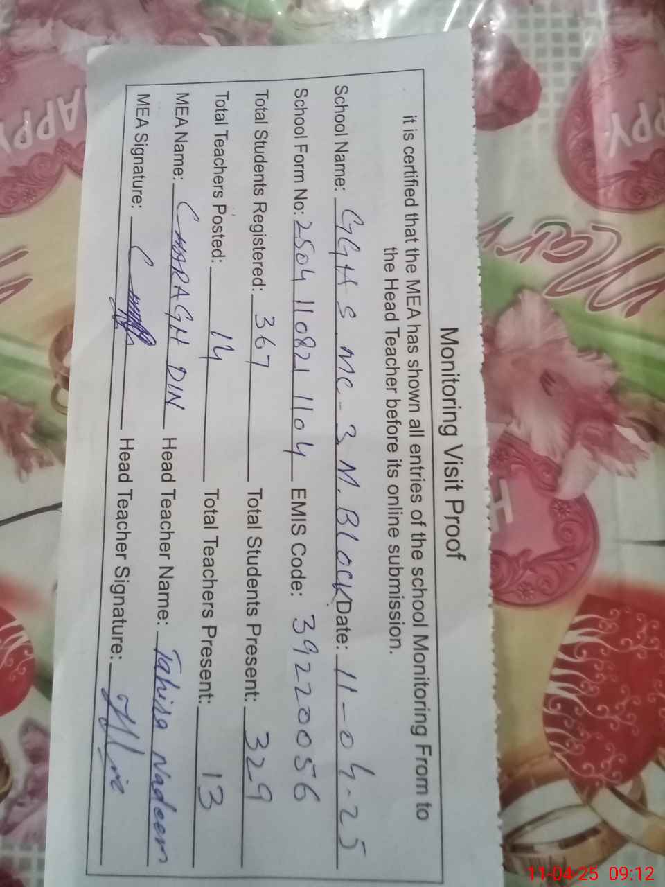 | EMIS Code: 39220056 | Name of School: GGHS MC NO.3 M BLOCK ARIFWALA | |||