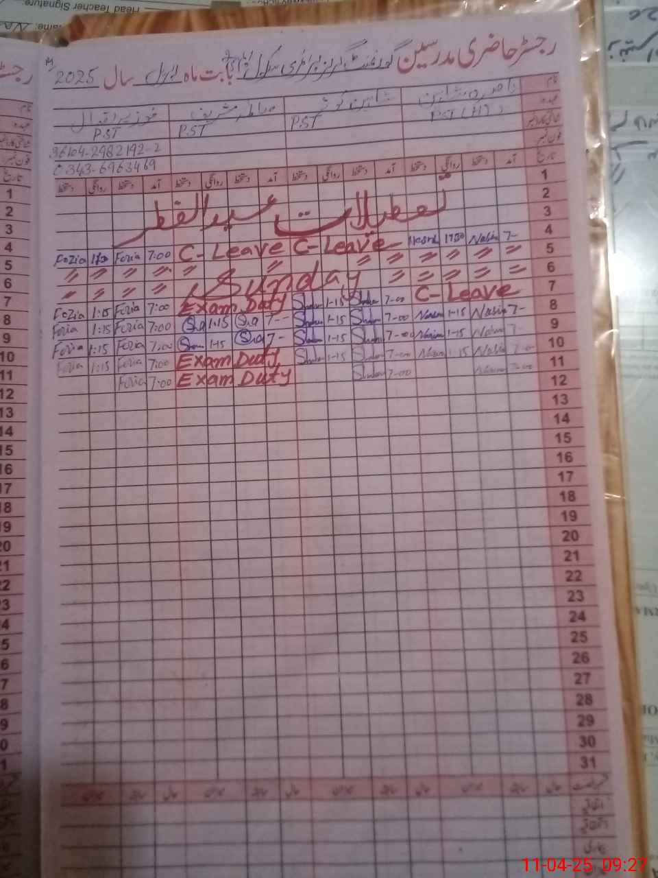 | 31**** | Sa**** Sh**** | 1 | 1 | 10 | 0 | 0 | 0 | 0 | 0 | 0 | 1 | Exam Duty | |
