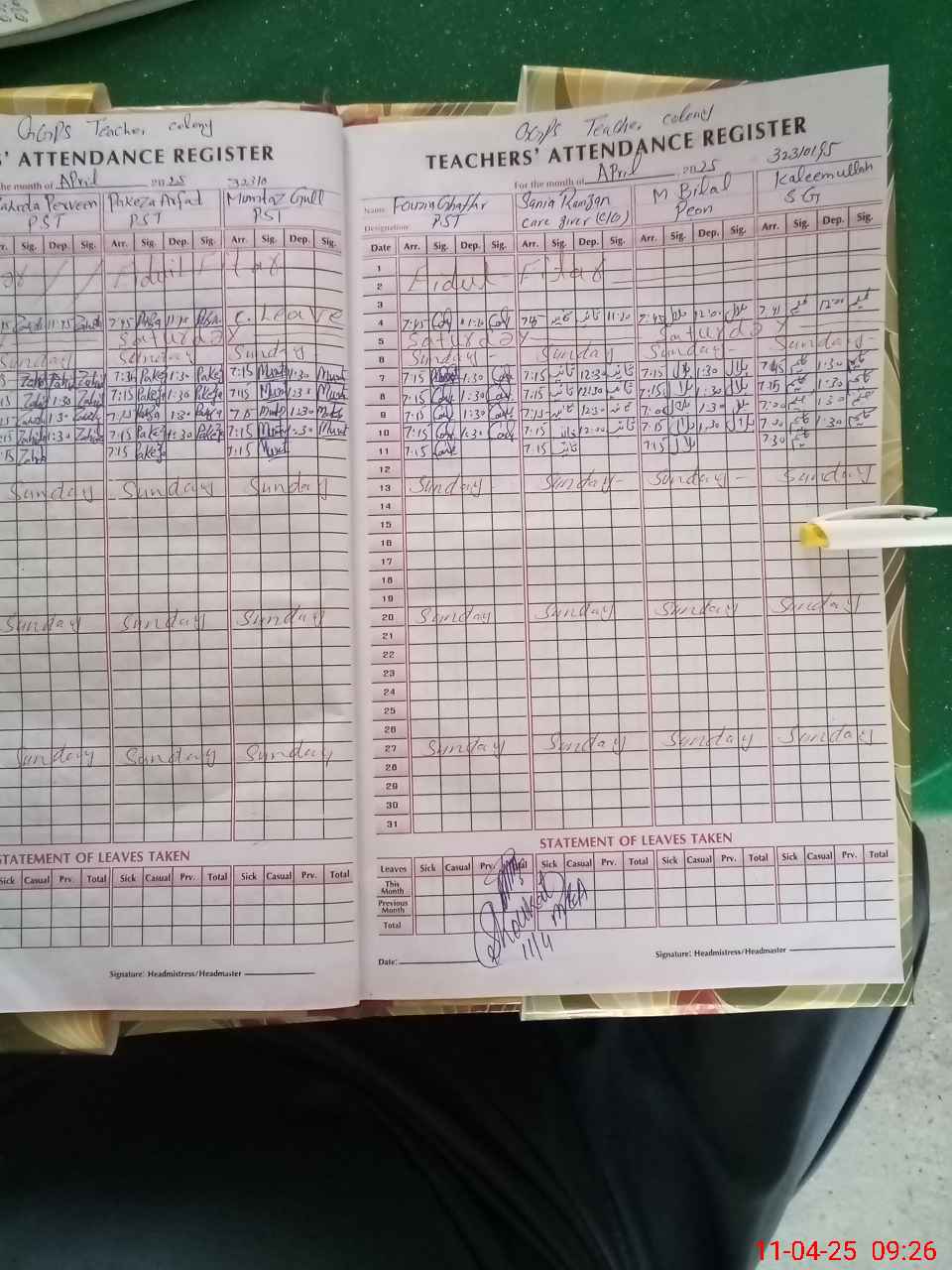 | Name: SH**** MU**** Designation: (School Headmaster's/Headmistress's) PST Phone/Cell Number: 03**** |
