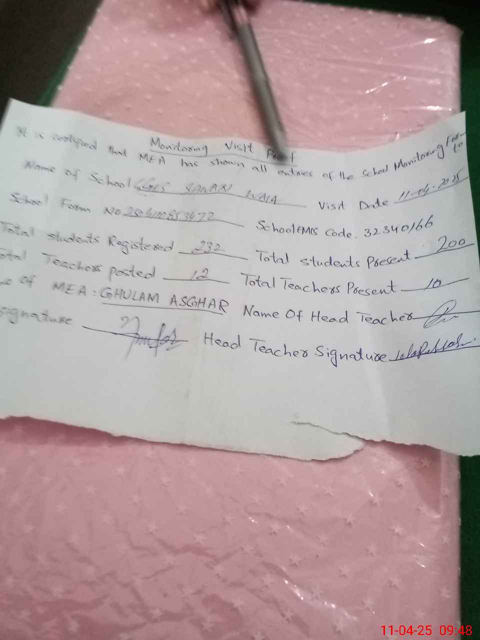 | Name: sa**** lq**** Designation: (School Headmaster's/Headmistress's) SST Phone/Cell Number: 03**** |