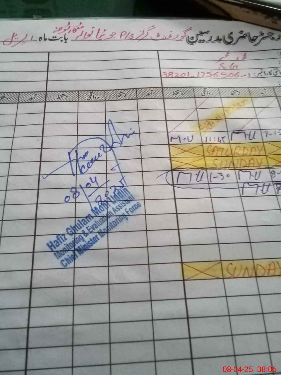 | Certified that this School was Inspected by the Undersigned MEA/DMO Today and the Information Stated Above is as Per Record. | |||||