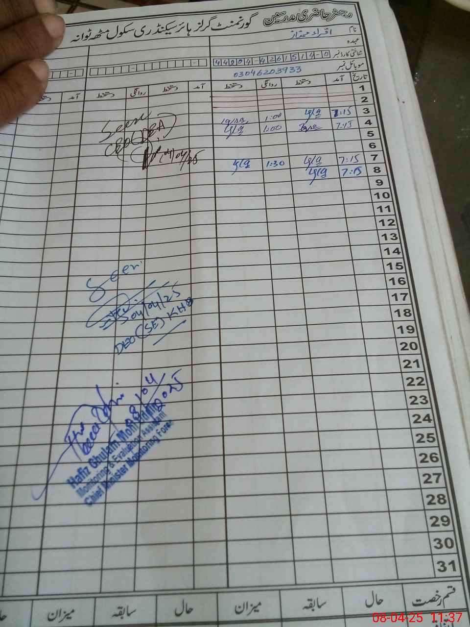 | Name: Fa**** Ya**** Al**** Designation: (School Headmaster's/Headmistress's) Principle Phone/Cell Number: 03**** |