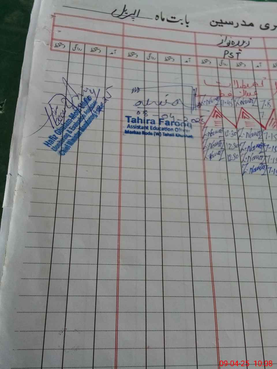 | CNIC | Full Name | Designation | R/C | Absence During Last Calender Month |