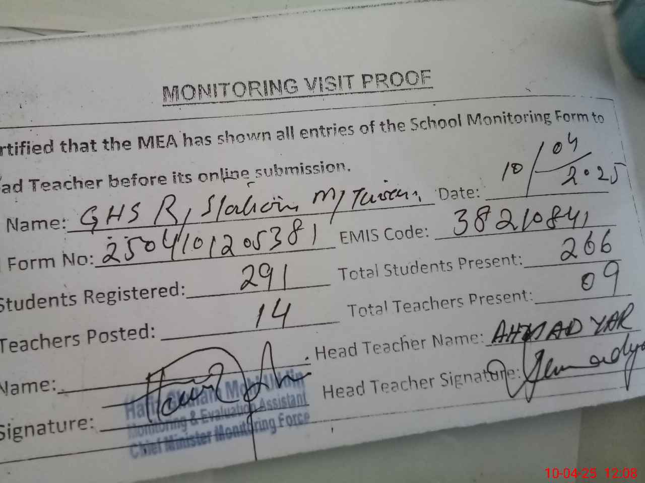 | EMIS Code: 38210841 | Name of School: GHS RAILWAY STATION MITHA TAWANA | |||