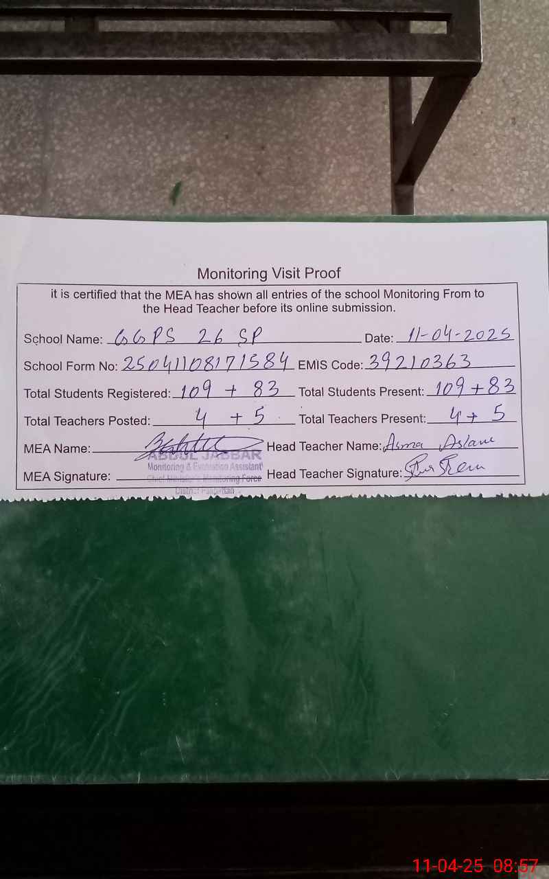 | EMIS Code: 39210363 | Name of School: GGPS 26/SP | |||
